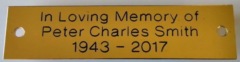 The text is deeply engraved on polished brass then may be infilled with black paint to add prominence.