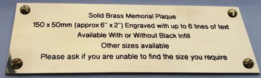 150mm x 50mm (6″x2″) Brass Effect Engraved Memorial Plaque Holes Optional. Acrylic / Laminates
